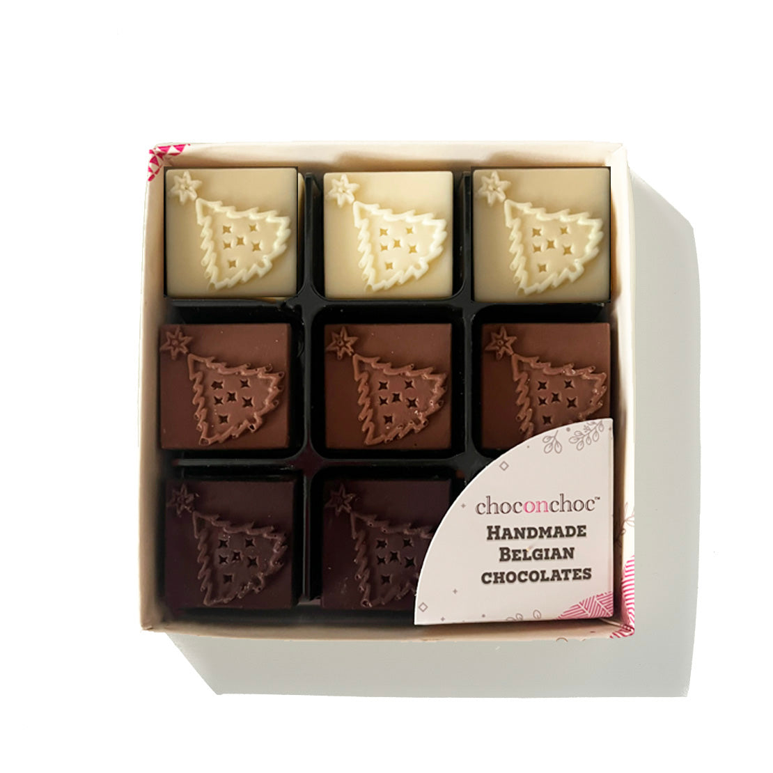 This joyful box of Christmas Tree squares are handmade by our chocolatiers using the finest Belgian milk, white and dark chocolate. Carefully carved these detailed trees make a wonderful treat to find in the bottom of a stocking on Christmas Day or an ideal present to gift a loved one this Christmas.