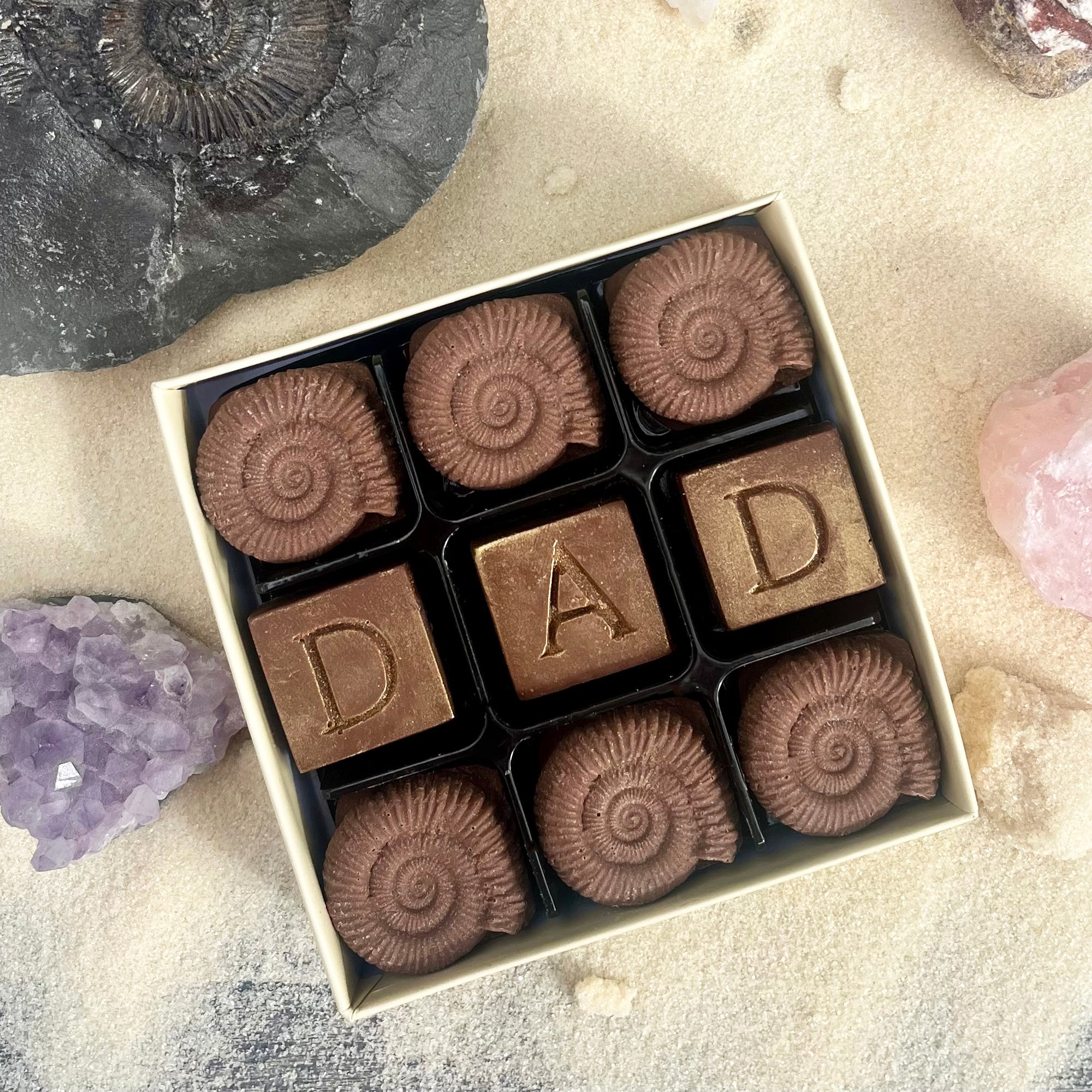 This cheeky gift contains chocolate-shaped fossils have been beautifully handcrafted by our artisan chocolatiers from smooth Belgian milk chocolate and dusted with edible gold dust.
