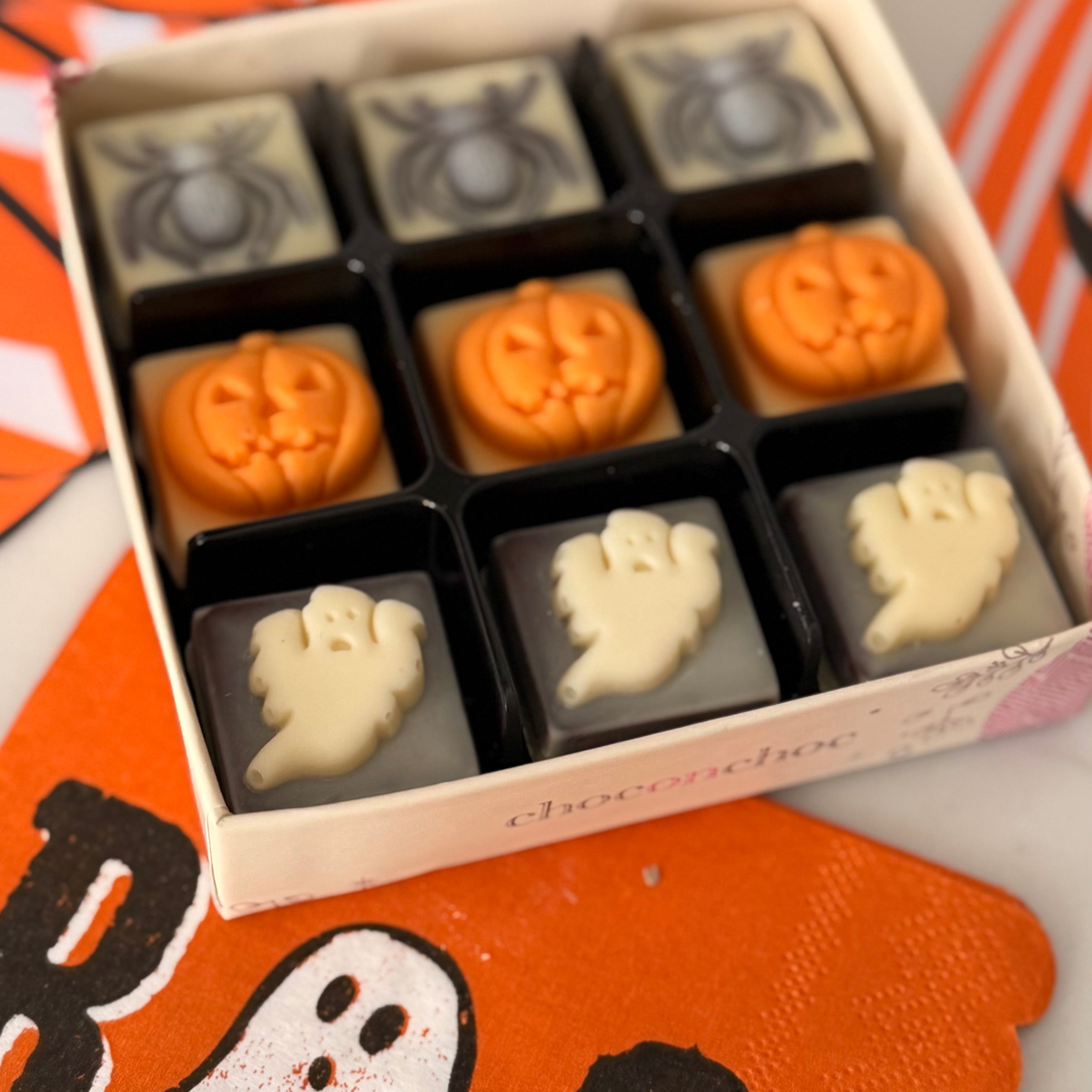 Indulge in the ultimate Halloween treat with our Spooky Chocolate Box, expertly handcrafted in Somerset using the finest dark and white Belgian chocolate. This delightful collection features 3 intricately designed pumpkins, 3 creepy spiders, and 3 charming ghosts, perfect for sharing with your little trick-or-treaters or savoring during a spooky movie night. Each bite offers rich, smooth flavors that capture the spirit of the season, making your celebrations even more memorable. Treat yourself and your loved ones to this irresistible assortment that combines festive fun with premium quality chocolate craftsmanship.