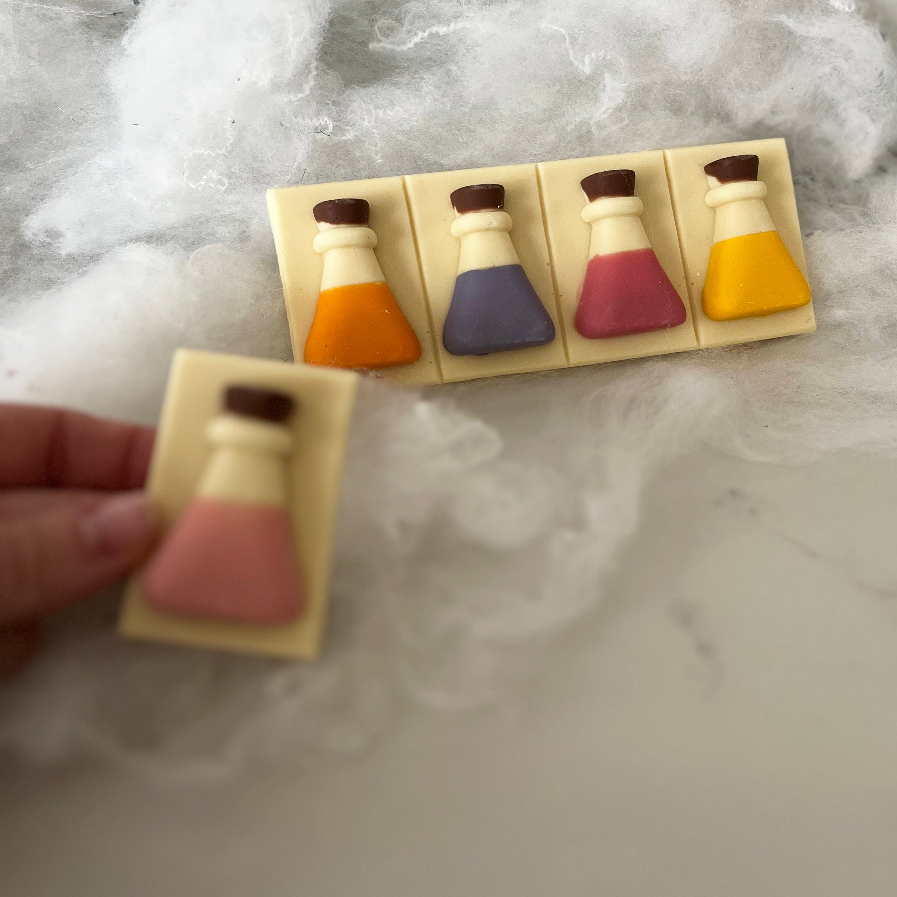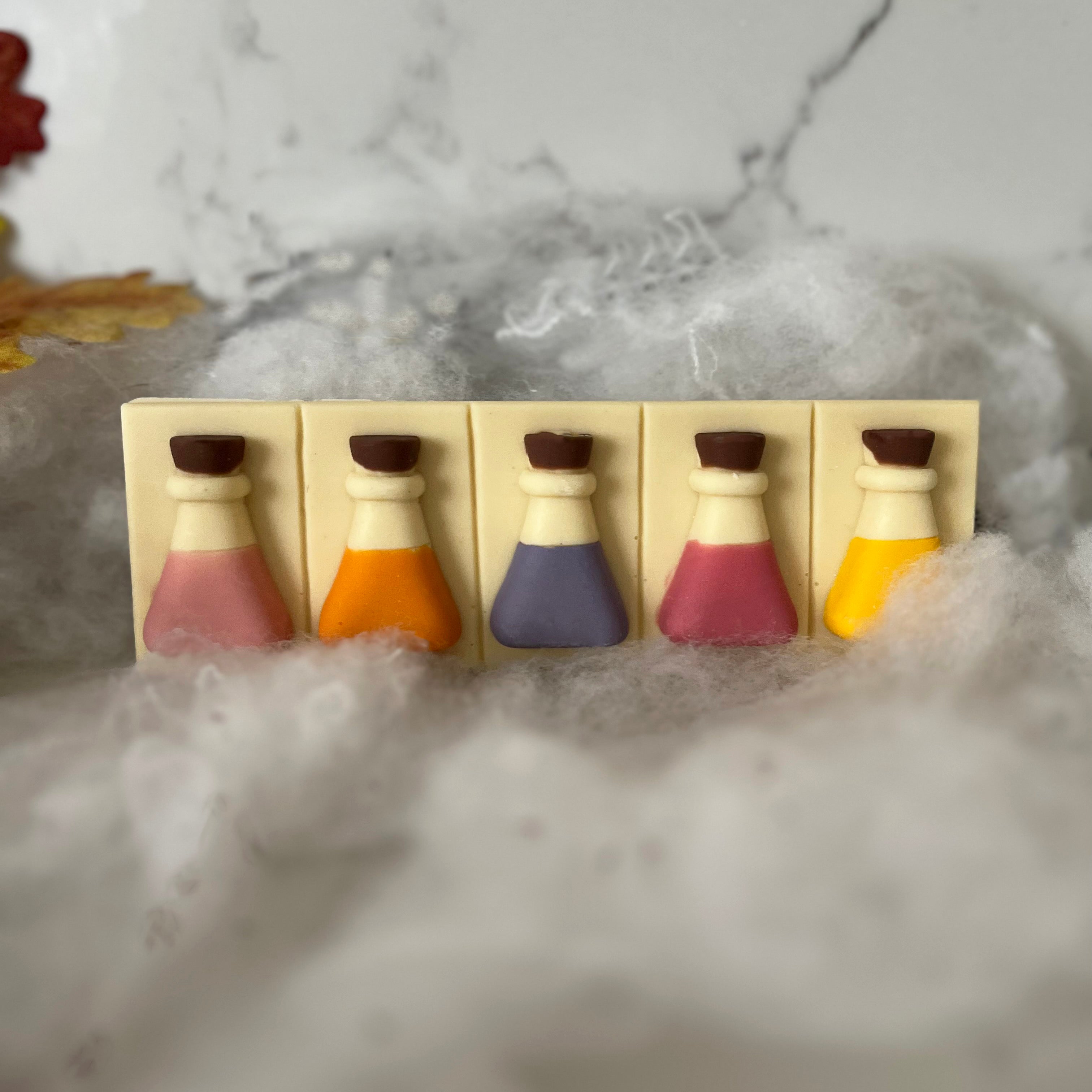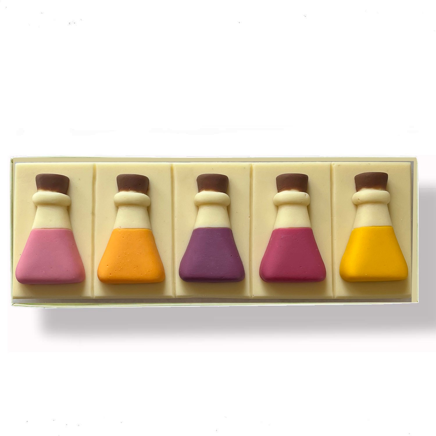 These colourful white Belgian chocolate potions contain a sweet strawberry centre. if you have the perfect chemistry then these chocolates are for you.