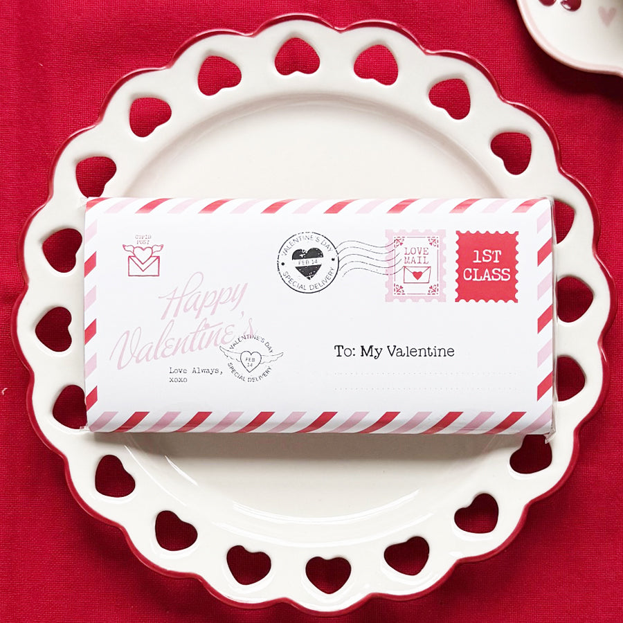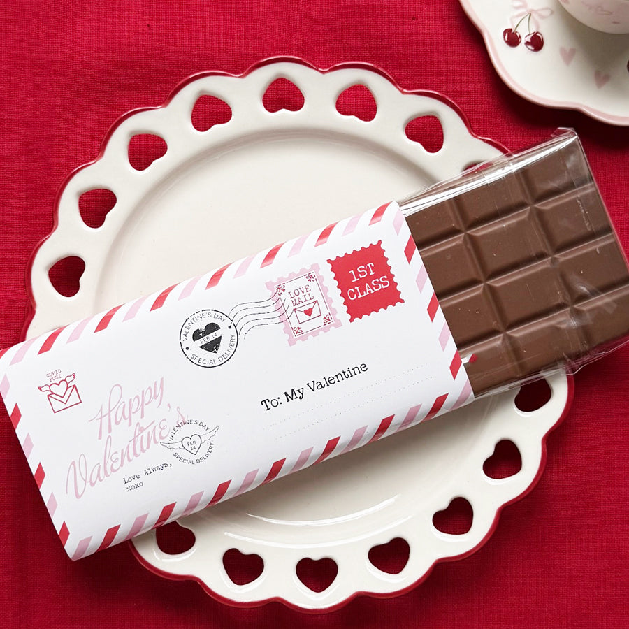 Express your affection with this exquisite Valentine's chocolate bar, crafted to make hearts skip a beat. Wrapped in romantic elegance, it's the perfect gesture to show someone special just how much they mean to you. Make this Valentine's Day truly memorable.